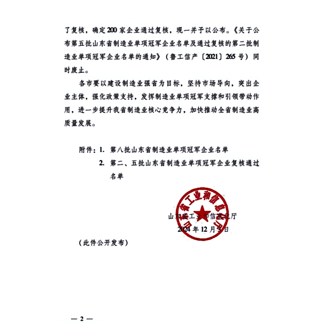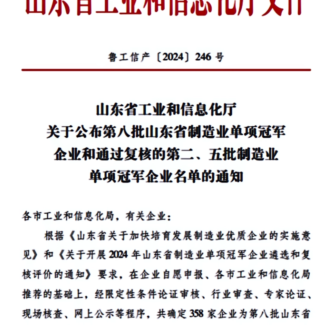 Shandong Huacheng Hi-Tech Adhesive Co., Ltd. (Huacheng)has recently been officially recognized by the Shandong Provincial Department of Industry and Information Technology as part of the eighth batch of “Shandong Provincial Manufacturing Champion Enterprises.”