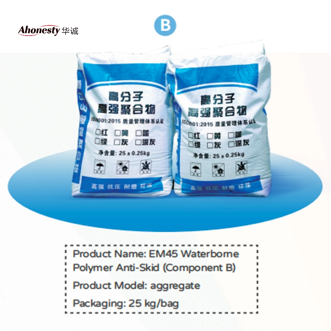 EM45 Polymer Anti-Skid 20 kg/bucket + 100 kg (4 bags) 2.5–3 kg/m² (2mm thick) Excellent anti-skid properties, high load-bearing capacity