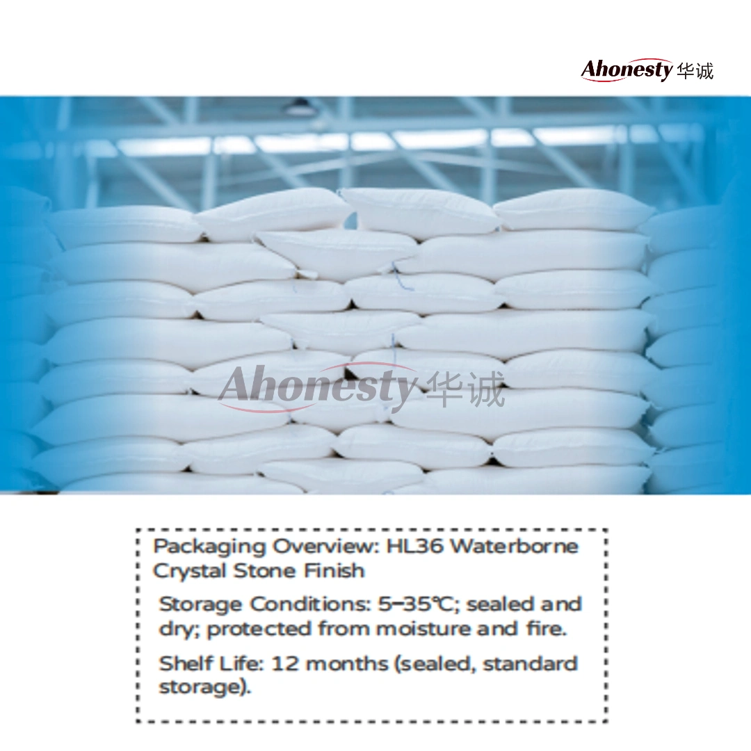 HL36 Waterborne Crystal Stone Finish 25 kg/bag 1.5–3 kg/m² (1–2 mm thickness) Zero VOC, easy to apply